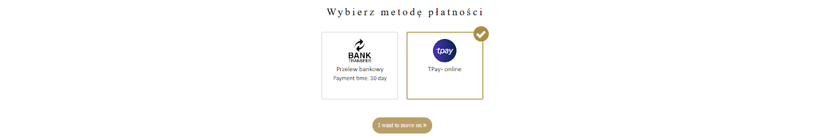 Po wybraniu sposobu dostawy automatycznie wczytuje się lista metod płatności dla danego kraju oraz wybranego sposobu dostawy.