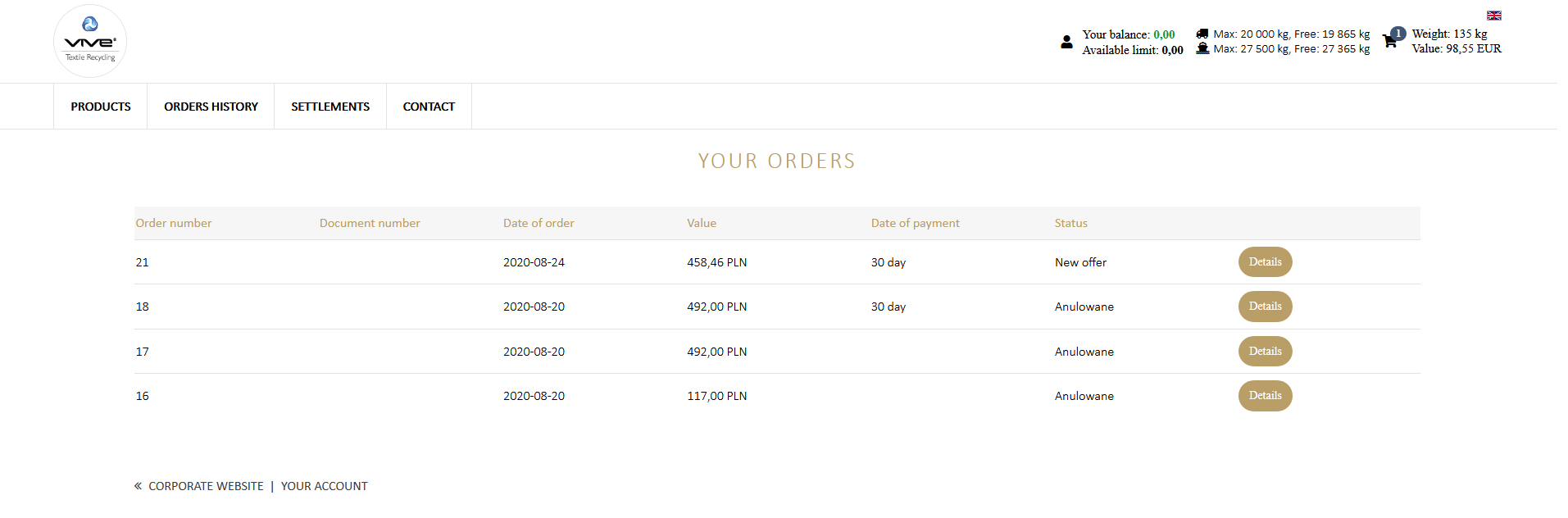Działająca od 26 lat firma VIVE Textile Recycling jest liderem branży recyklingu tekstyliów w Europie. Codziennie ponad 990 pracowników, pracujących w systemie 3-zmianowym, sortuje i pakuje gotowe produkty z 700 różnych grup asortymentowych. Tak przygotowane produkty trafiają do ponad 70 krajów świata.