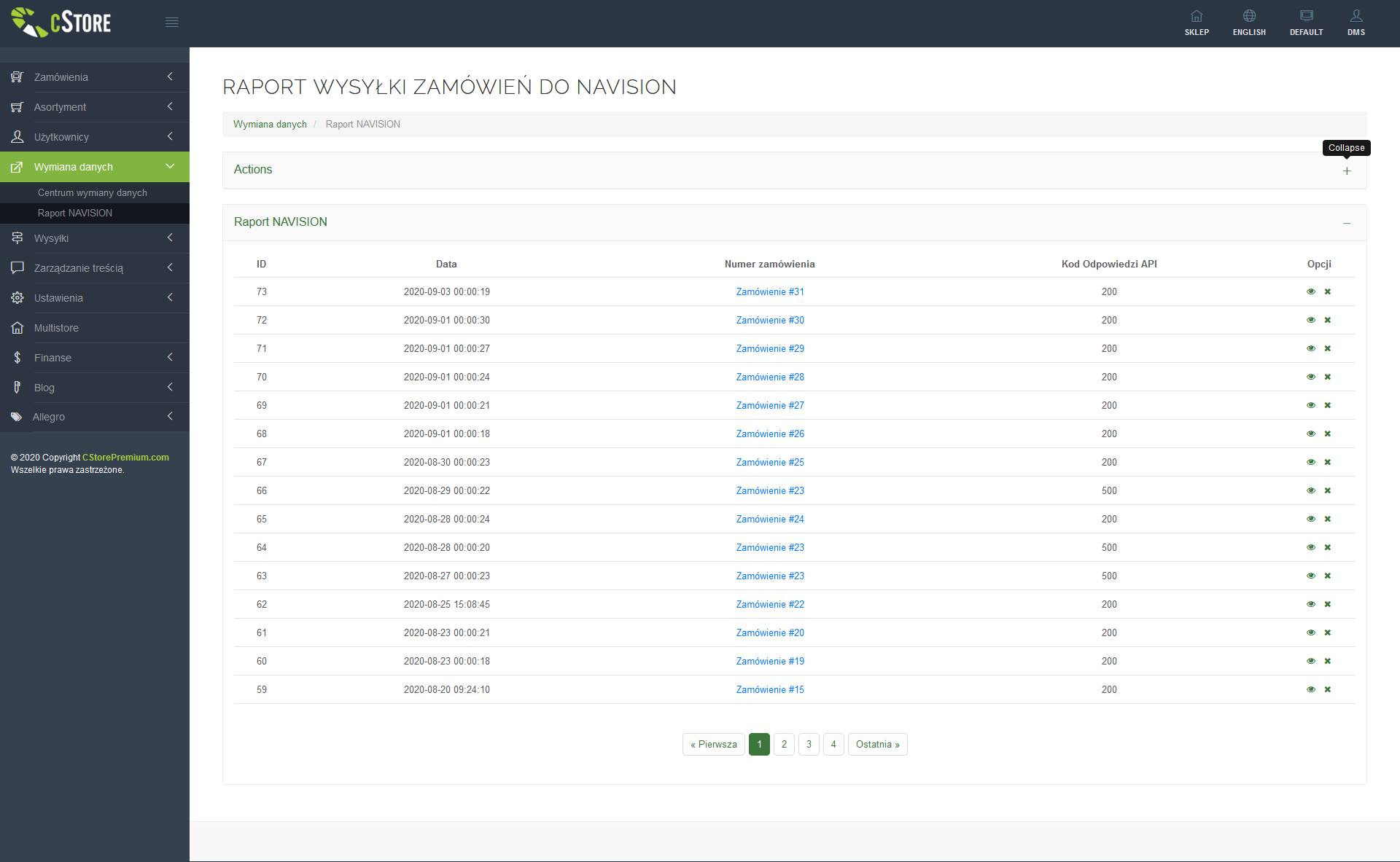 Sklep eksportuje zamówienia co 10 minut za pomocą przygotowanego przez Navision web serwisu. System zapisuje informację o eksporcie w wewnętrznym logu. W przypadku niepoprawnego eksportu podejmuje próbę ponownego eksportu zamówienia przy kolejnej procedurze eksportu. Jeśli próba eksportu zamówienia nie powiedzie się trzy razy system zaprzestaje próby eksportu danego zamówienia.